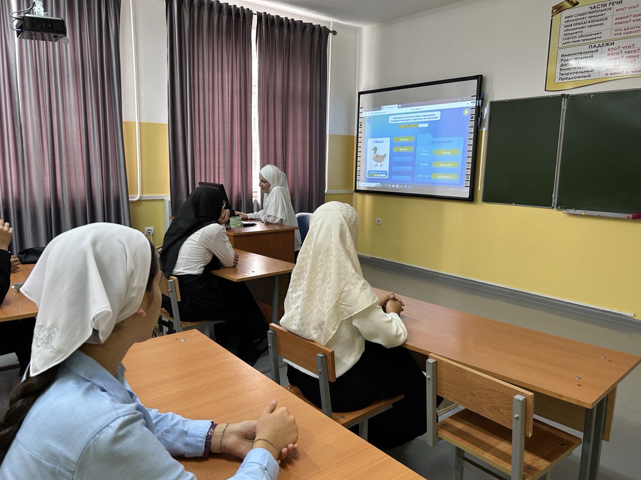 В рамках открытого урока обучающимся 7-х классов рассказали о применении технологий искусственного интеллекта в отраслях, они познакомились с процессами работы с данными, что поможет на практике изучать применение технологий искусственного интеллекта в разных отраслях экономики. Ученики, при поддержке педагога и используя предложенные материалы, изучили тему, а затем закрепили знания в формате интерактивного тренажера.